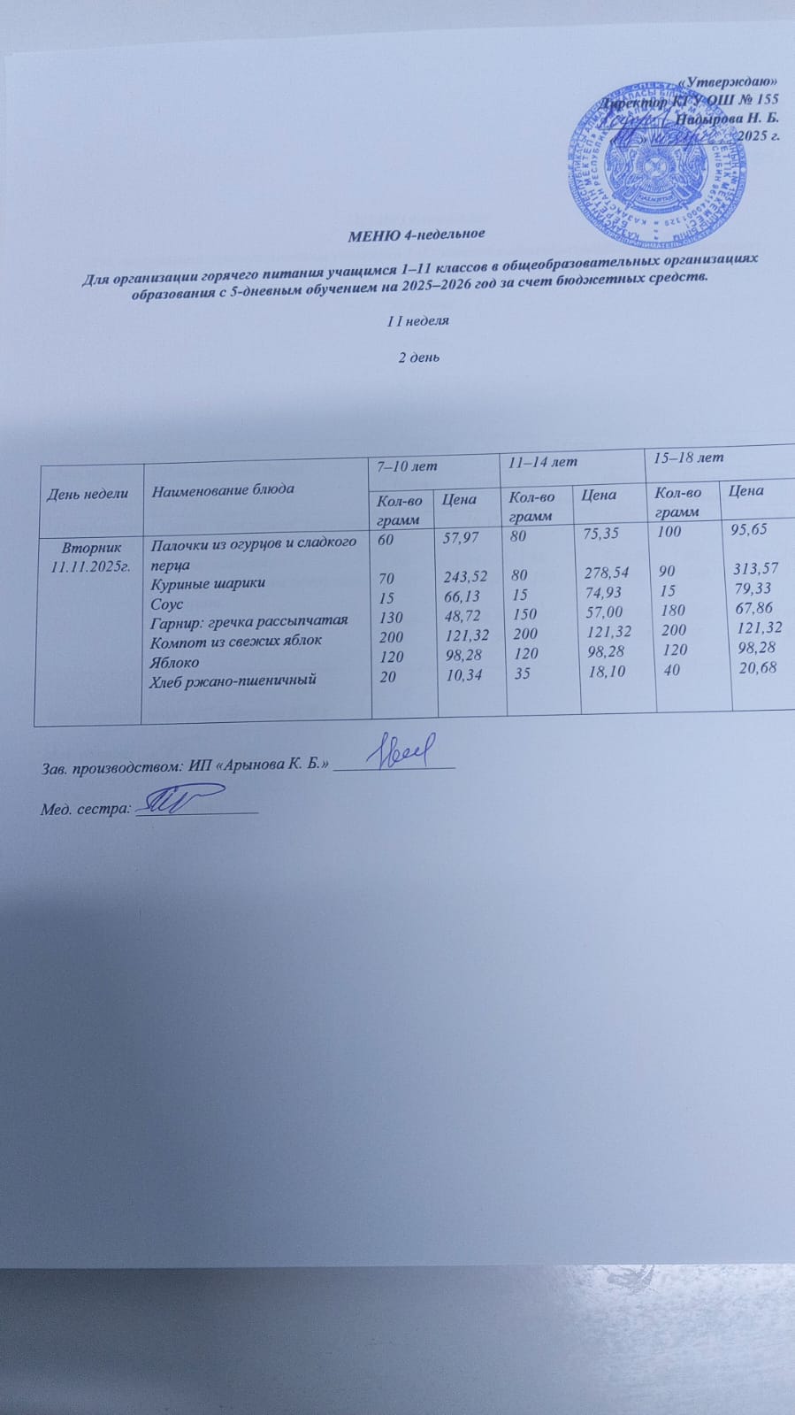 11 қараша 2025 0 1 2 3 4 5 Начальные классы/ школьное меню 11.11.2025 Осы беттің QR-коды:QR-код этой страницы: